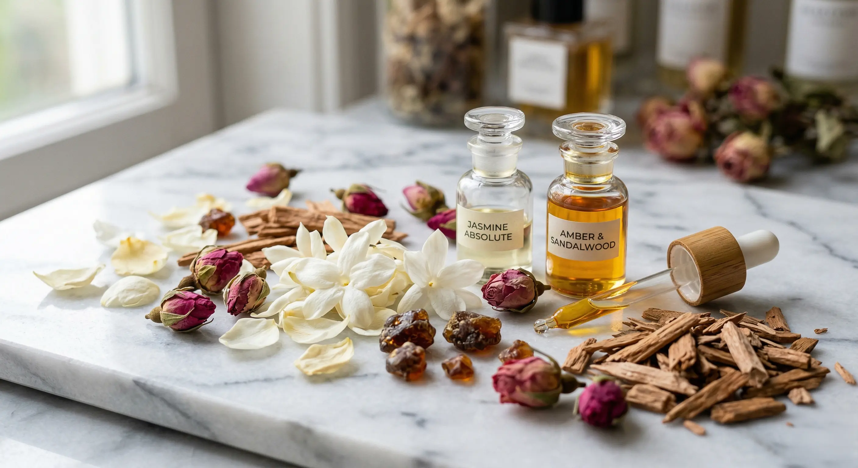 We source raw, sustainably grown ingredients—from the hand-picked jasmine of Grasse to the wild sandalwood of Mysore—ensuring each scent carries the spirit of its origin.